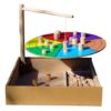 Le jeu en bois comprend un 1 disque de 6 couleurs, 1 potence bois, 60 pions bois, 2 dés et un livret de règles.