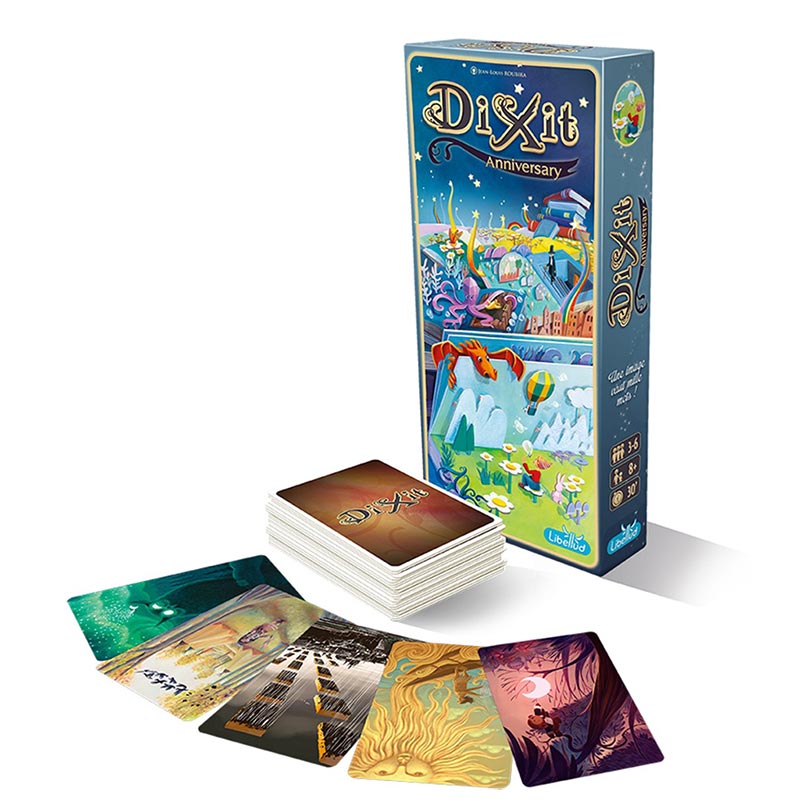 Découvrez 84 cartes originales pour renouveler et enrichir vos parties de Dixit. Dixit Anniversary ouvre aux joueurs les portes d’un monde à la frontière entre le réel et le conte.