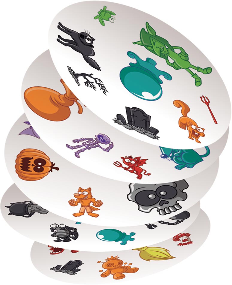 Il faut bien cela pour ranger les 2 sets de cartes aux symboles et aux thèmes inédits ! Le « Chair de Poule » est un set de 55 cartes, qui brillent dans le noir ! Le set « Fiesta » est constitué de 30 cartes à effet doré, pour des parties de luxe !