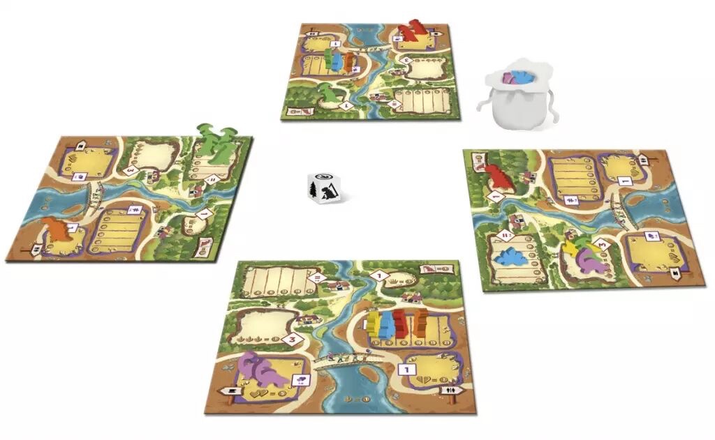 Contenu du jeu : 60 meeples de dinosaures. 5 plateaux de joueur double-face de zoo. 1 sac opaque. Les règles du jeu.