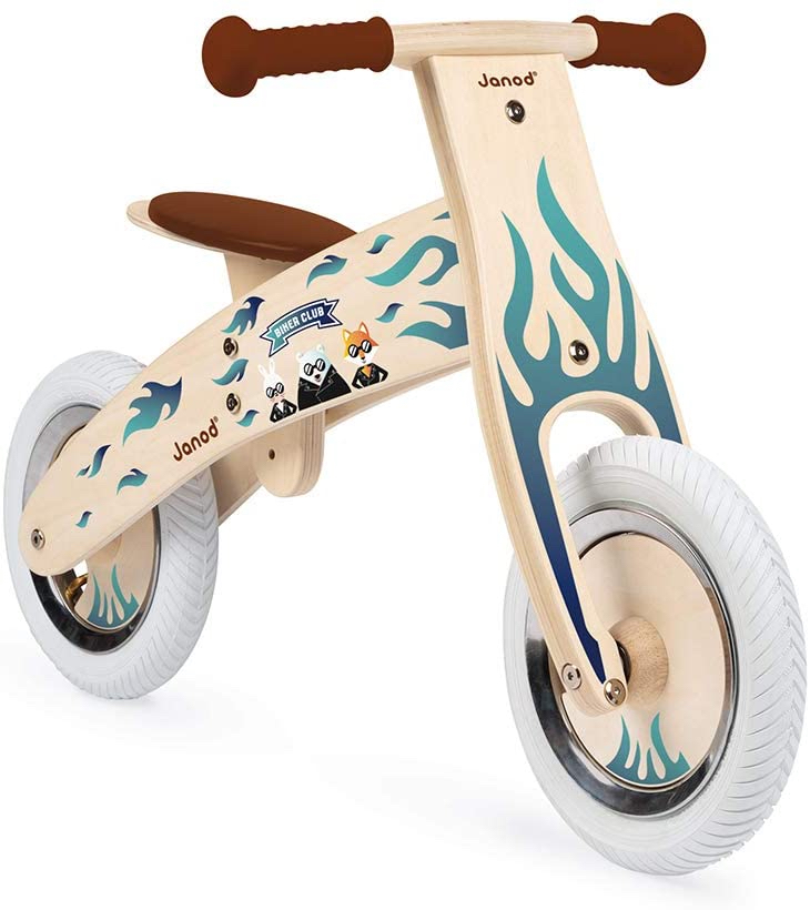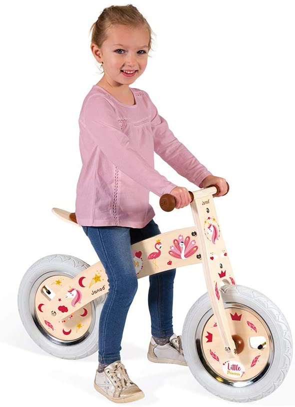 Cette draisienne en bois nature ne passera pas inaperçue une fois décorée à votre gout à l’aide des planches de stickers incluses avec 2 thèmes proposés : Licorne et Biker. Votre enfant sera ravi de retrouver ses amis au parc accompagné de son nouveau fidèle compagnon Unique ! Ce jouet de plein air est un incontournable chez les enfants à partir de 3 ans. Les petits vont pouvoir tester leur équilibre et profiter de belles balades en famille en toute autonomie ! Les Draisiennes offrent l’avantage de faciliter l’apprentissage du vélo sans roulettes puisque l’enfant aura déjà acquis la notion d’équilibre sur un deux roues. Les poignées offrent du confort aux petites mains de votre enfant et permettent une bonne préhension grâce à leur composition en silicone. Les pneus sont gonflables et la selle réglable en hauteur de 40 à 44 cm s’adaptera à la taille de l’enfant au fur et à mesure qu’il grandira. L’assise est ultra confortable avec son revêtement souple. N’oubliez pas de choisir le casque assorti pour plus de sécurité ! Charge maximum : 30kg.