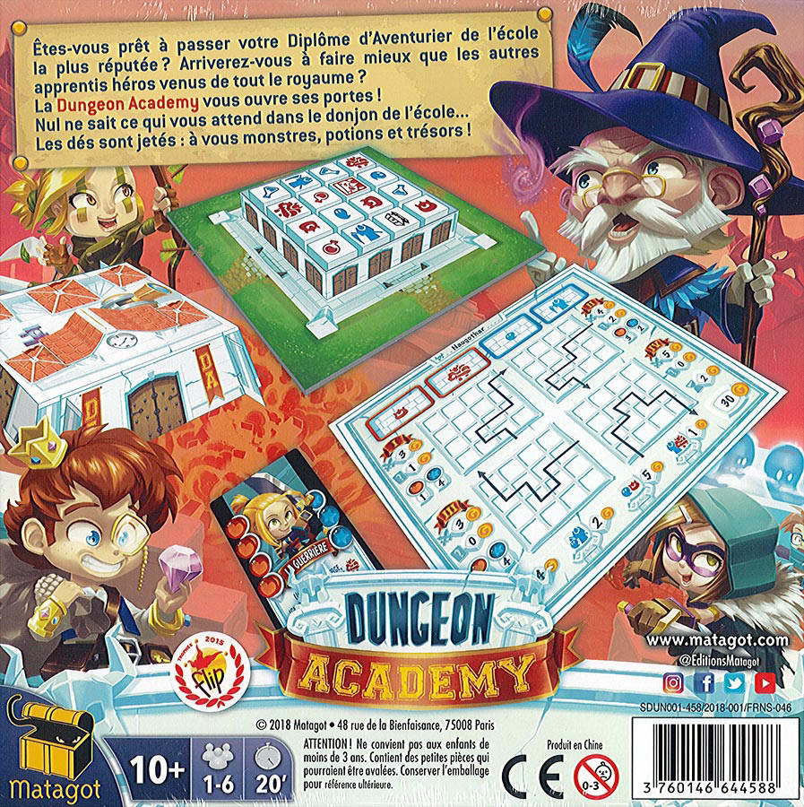 Créez votre propre donjon en secouant les dés et relevez les défis de cet incroyable labyrinthe ! Dungeon Academy est un jeu d’aventures, de combats et de course. Dès 10 ans.