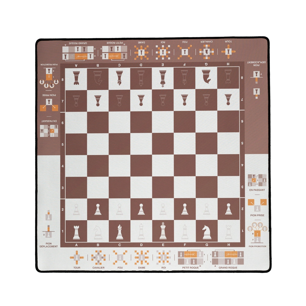 Votre tapis d’échecs pédagogique et ses déplacements imprimés sur le tapis plateau, idéal pour l’apprentissage du jeu d’échec .