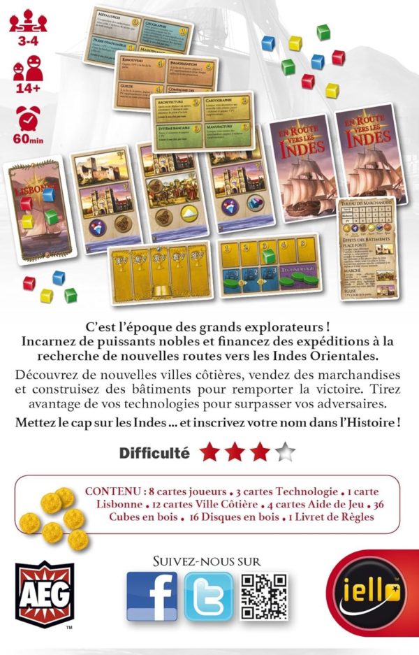 En Route vers les Indes… Mettez le cap sur les Indes et inscrivez votre nom dans l’Histoire ! Incarnez de puissants nobles et financez des expéditions à la recherche de nouvelles routes vers les Indes Orientales. Un jeu aussi minimaliste que profond !