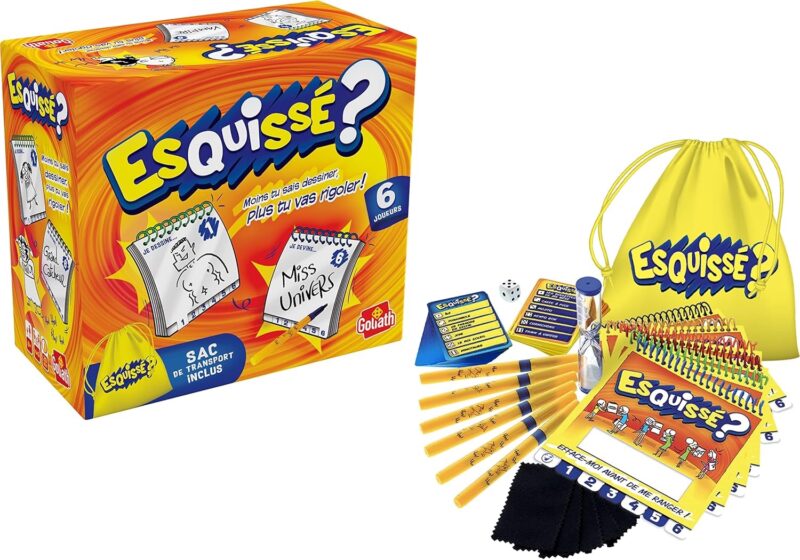 Esquissé est un jeu de société divertissant qui mettra vos talents de dessinateur à l’épreuve ! Faites deviner un mot ou une expression à votre voisin en dessinant le plus rapidement possible sur votre carnet. Dessinez et passez le carnet à votre voisin…qui va réinterpréter ton dessin ! Entre quiproquos et dessins ratés…vous n’avez pas fini de vous marrer !