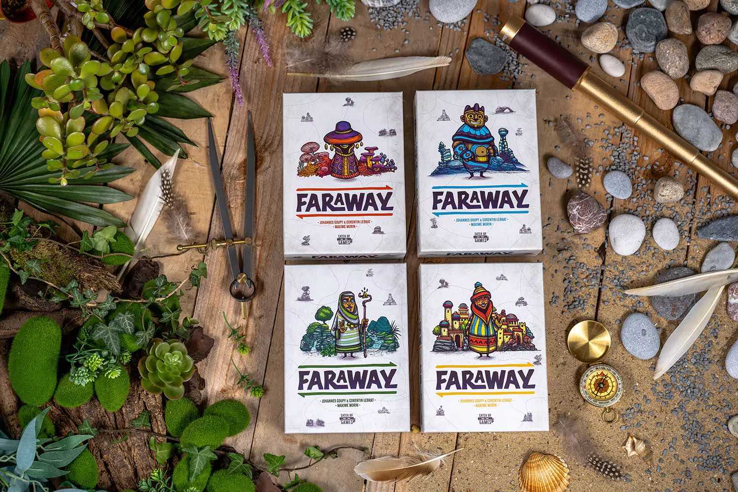 Bienvenue sur Alula, continent à la géographie mouvante, calquée sur le rythme des saisons. Sillonnez ce monde à la découverte des merveilles qu’il recèle. Dans Faraway … Rencontrez ses habitants, répertoriez ses secrets et obtenez un maximum de renommée. Un jeu rapide, une mécanique originale et des règles expliquées en moins de 5 mn.