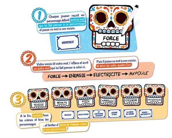En ce jour sacré, les morts sont de retour ! Fiesta de los Muertos est un jeu coopératif mêlant imagination et déduction pour une ambiance des rires garantis.