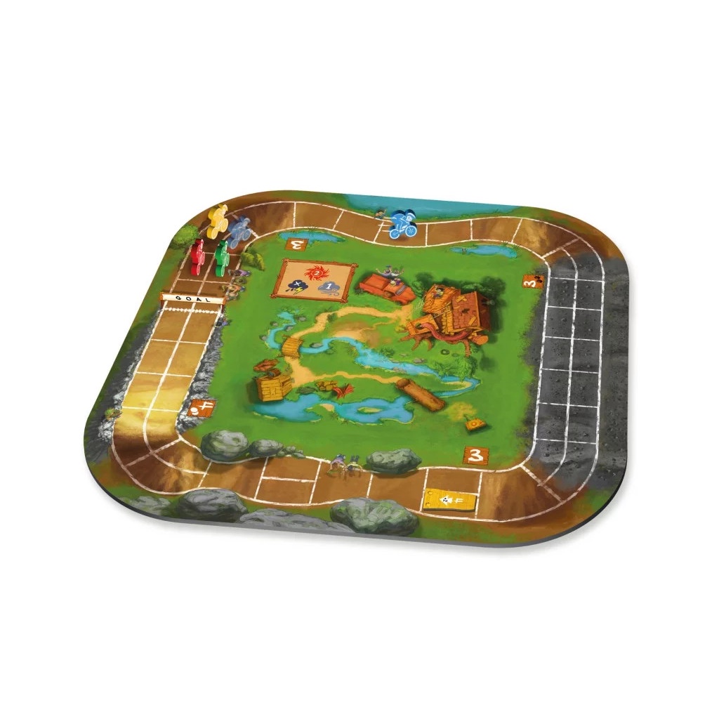 À chaque tour, pioche un jeton et fais avancer ton pilote du nombre de cases qu’il indique. Gravier, rampes, rétrécissements… Le circuit est semé d’embûches et plein de surprises !