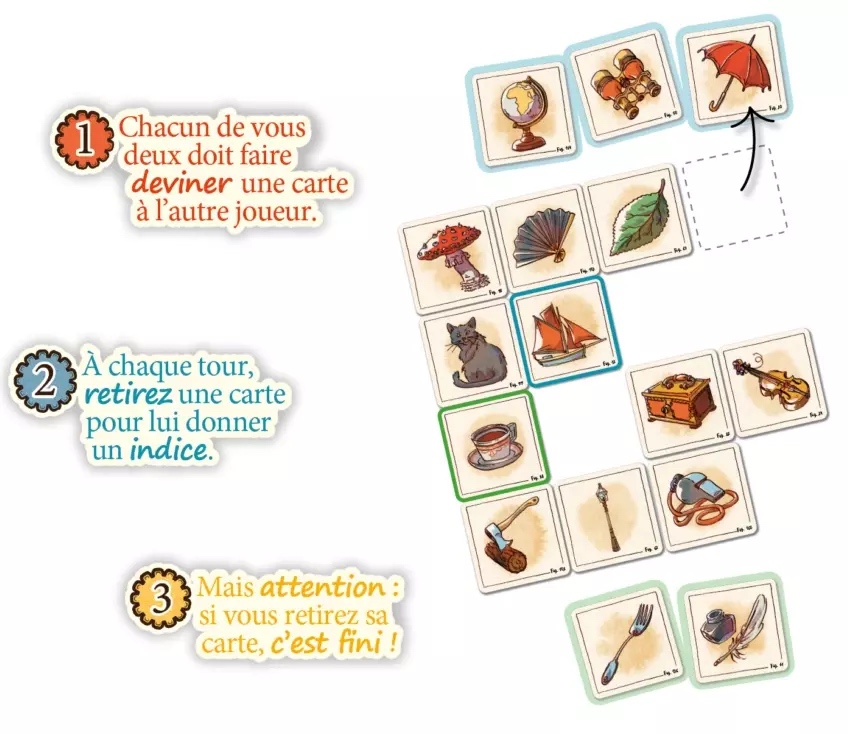 2) A tour de rôle, sélectionnez avec finesse une carte afin de donner un indice.