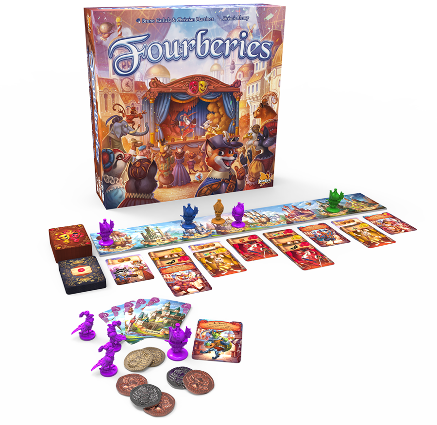 Doté d’un matériel bien léché et coloré, Fourberies est un jeu ingénieux et fluide proposé par les malicieux Bruno Cathala et Christian Martinez. Fourberies est un jeu simple et abordable pour toute la famille, rapide à comprendre, plein de fourberies et de malices mais… convaincre le roi n’est vraiment pas chose aisée !
