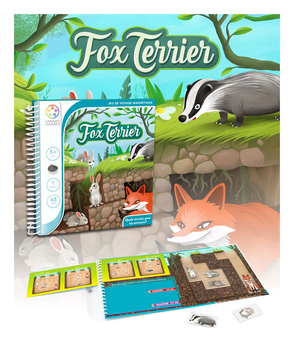 Pour s’amuser partout sans s’encombrer, quoi de mieux qu’un jeu en format de poche, où tous les éléments sont reliés ou aimantés au carnet qui contient tout le nécessaire de jeu ? Fox Terrier est un jeu de puzzle magnétique très amusant ! Idéal pour emporter avec vous en voyage.