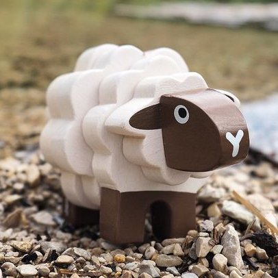 Funny Kit Animaux…, un mouton en bois à assembler. Voici un superbe Mouton composé de 5 pièces en bois. L’enfant assemble les différentes parties du corps de l’animal pour le reconstituer. Ce dinosaure appartient à une jolie gamme d’animaux, préhistoriques ou non. En collectionnant plusieurs modèles, l’enfant peut mélanger les pièces de différents animaux pour créer des créatures imaginaires et cocasses. Il exerce sa concentration et sa dextérité, puis imagine des histoires dont ce mouton est le héros.