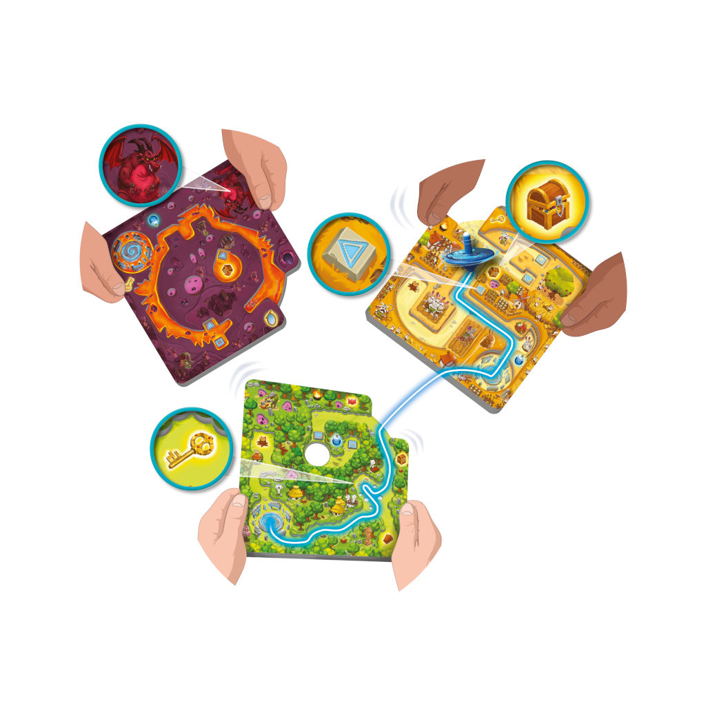 Le premier joueur lance la toupie sur le cercle de pierres de son plateau et la déplace en inclinant son plateau pour la diriger vers sa cible. Une fois arrivé sur sa cible, le joueur guide la toupie vers la sortie pour la faire passer sur le plateau tenu par le joueur suivant. La dynamique de relais entre les joueurs se poursuit ainsi jusqu’à la réalisation complète de la mission, mais attention aux obstacles !