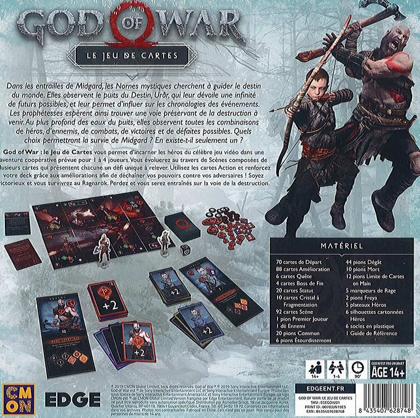 Les choix possibles dans la customisation des decks, les scènes à accomplir ou à délaisser, les personnages disponibles, font de chaque partie de God of War une expérience unique. Les fans de la série de jeux vidéo y retrouveront les icones et les ambiances qui ont fait son succès, tandis que les joueurs de jeu de société feront l’expérience d’un deckbuilding coopératif original !