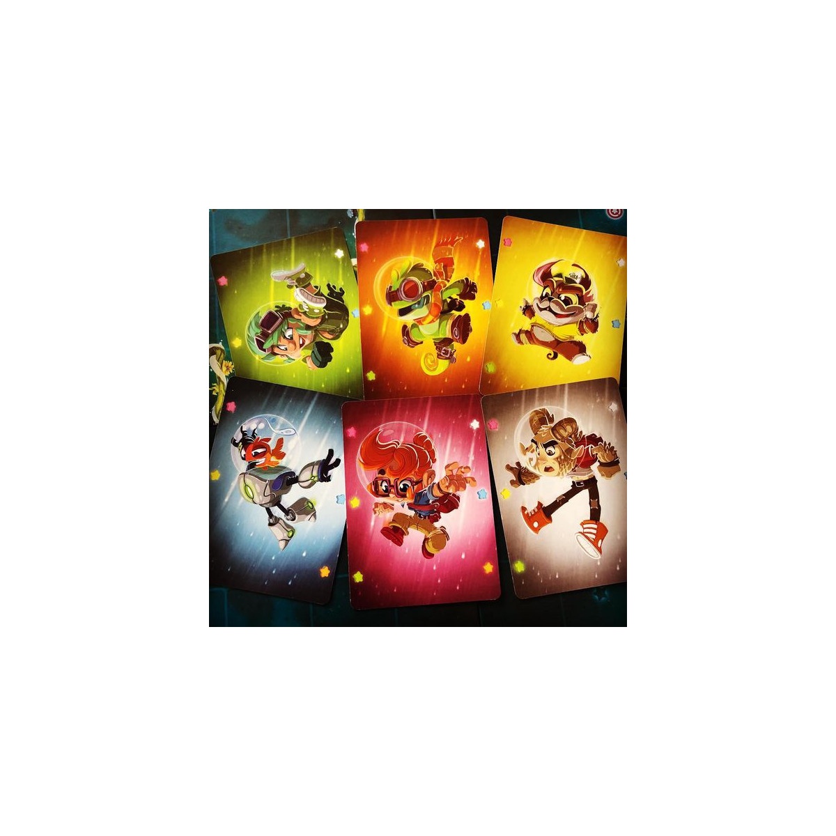 Incarnez l’une de ces superstars en quête de richesse et déjouez les pièges gravitationnels qui vous sont tendus ! Le joueur avec la plus belle collection d’étoiles remporte la partie.