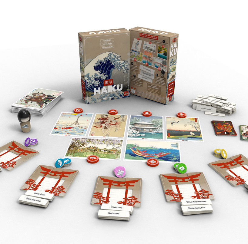 Haïku est un jeu coopératif de communication où les joueurs jouent ensemble contre les démons Yokaïs. À chaque tour de jeu, ils doivent choisir, parmi 6 lieux (des estampes japonaises), le chemin qui les rapproche de la sécurité. Haiku est un jeu poétique, beau et intelligent, qui mêle créativité et coopération avec une mécanique élégante.