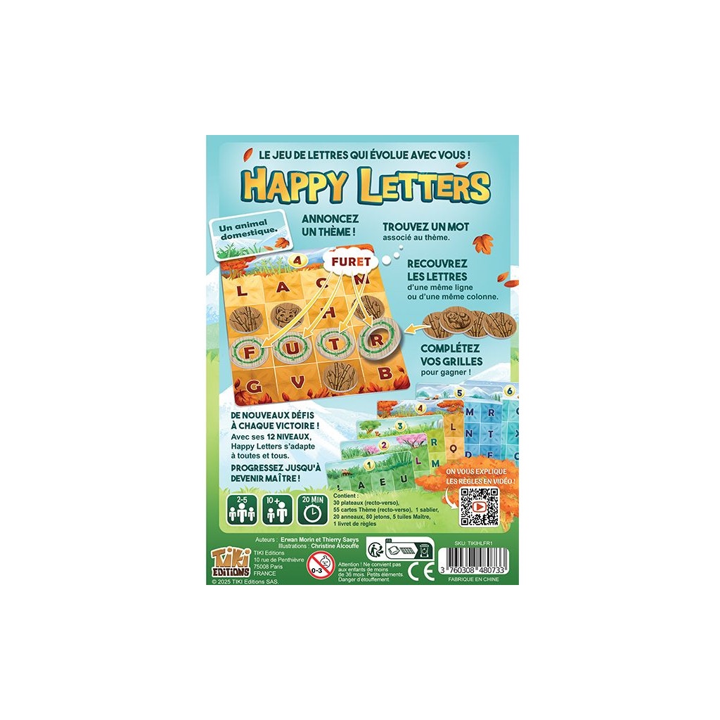 Facile à prendre en main et riche en rejouabilité, Happy Letters est parfait pour jouer en famille ou entre amis tout en s’amusant avec les mots !