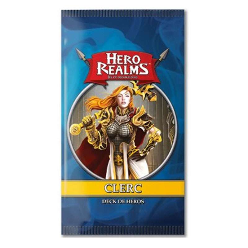 Le Deck de Héros : Clerc permet au joueur de remplacer sont deck de départ par celui-ci afin de jouer avec un personnage spécifique d’Hero Realms. Dès 12 ans.