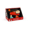 Le corps de l’animal est en merisier et les roues en hêtre. Oreilles et langue en feutrine. Les roues sont désaxées à l’arrière pour donner un air dandinant et rigolo à l’hippopotame quand il avance en silence, grâce au caoutchouc antidérapant sur les roues. L’animal est muni d’un grelot et d’un ressort en métal pour la queue mobile ! Peinture à l’eau, et fabrication en bois certifié FSC® (bois issu de forêts gérées durablement).