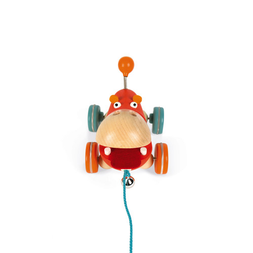 Un sympathique jouet d’éveil qui aidera bébé à développer sa motricité. Pendant sa balade, l’hippopotame se dandine et sa clochette tinte joyeusement ! Ce jouet rigolo à tirer et à promener partout servira également de décoration dans la chambre de votre enfant.