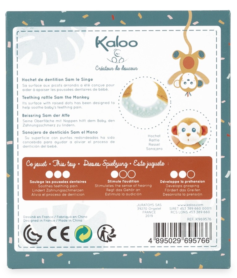 Kaloo vous emmène dans la jungle avec cette nouvelle gamme exotique et stimulante. Alban le Toucan tout mignon et l’adorable Sam le singe qui accompagneront votre enfant dans le développement de ses sens et sa motricité de façon ludique et variée.