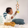 Hochet mutli-activités coloré Sam le singe pour apprendre bébé à distinguer les formes et les couleurs mais aussi stimuler l’activité auditive et tactile. Différents éléments liés a un anneau central parmi lesquels un hochet, un anneau de dentition, un grelot et la tête de Sam sur l’anneau. Utilisable dès la naissance.