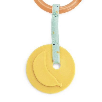 Inclus : Anneau de dentition, anneau texturé à billes, grelot.