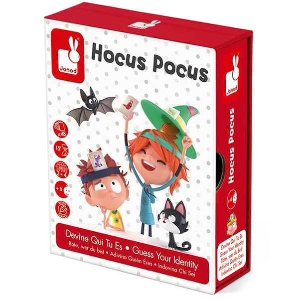 Hocus Pocus de Janod. Devine qui tu es ? Un jeu de devinettes et de rapidité dans l’univers des sorciers, idéal pour stimuler le sens de l’observation, les réflexes et mettre une ambiance de fou !