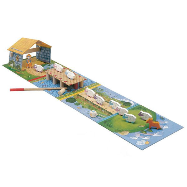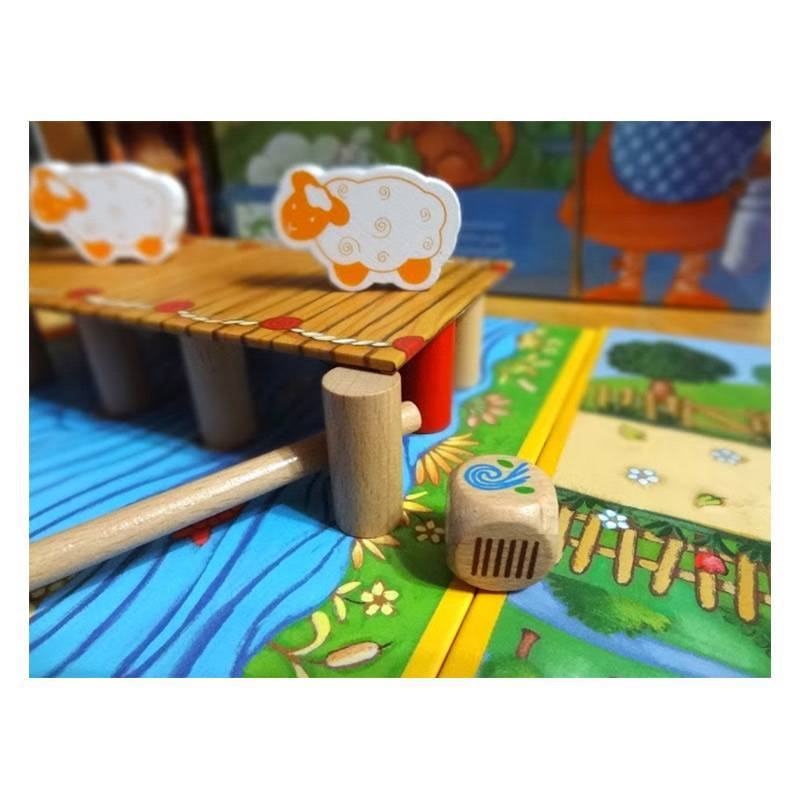 Les moutons broutent dans la montagne, gardés par la bergère et son chien, mais le vent se lève… il faut vite rentrer à la bergerie. La mission des enfants est de faire traverser le pont sur pilotis à tout le troupeau avant que celui ci ne s’écroule.