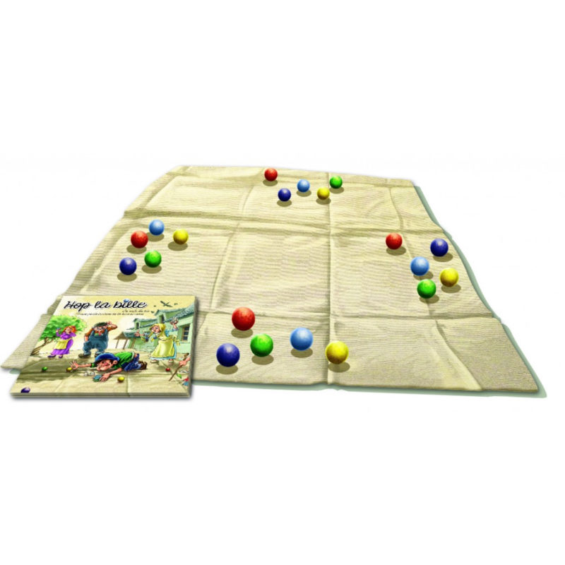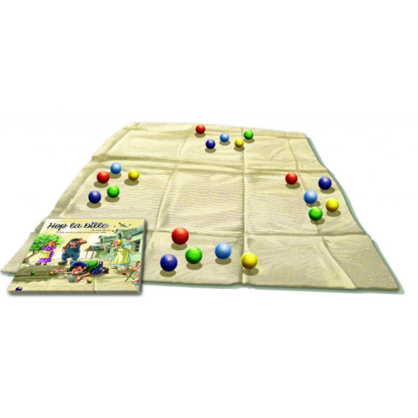 Contenu : 12 cartes, 20 billes en terre, une cour de récré en tissu, livret de règles.