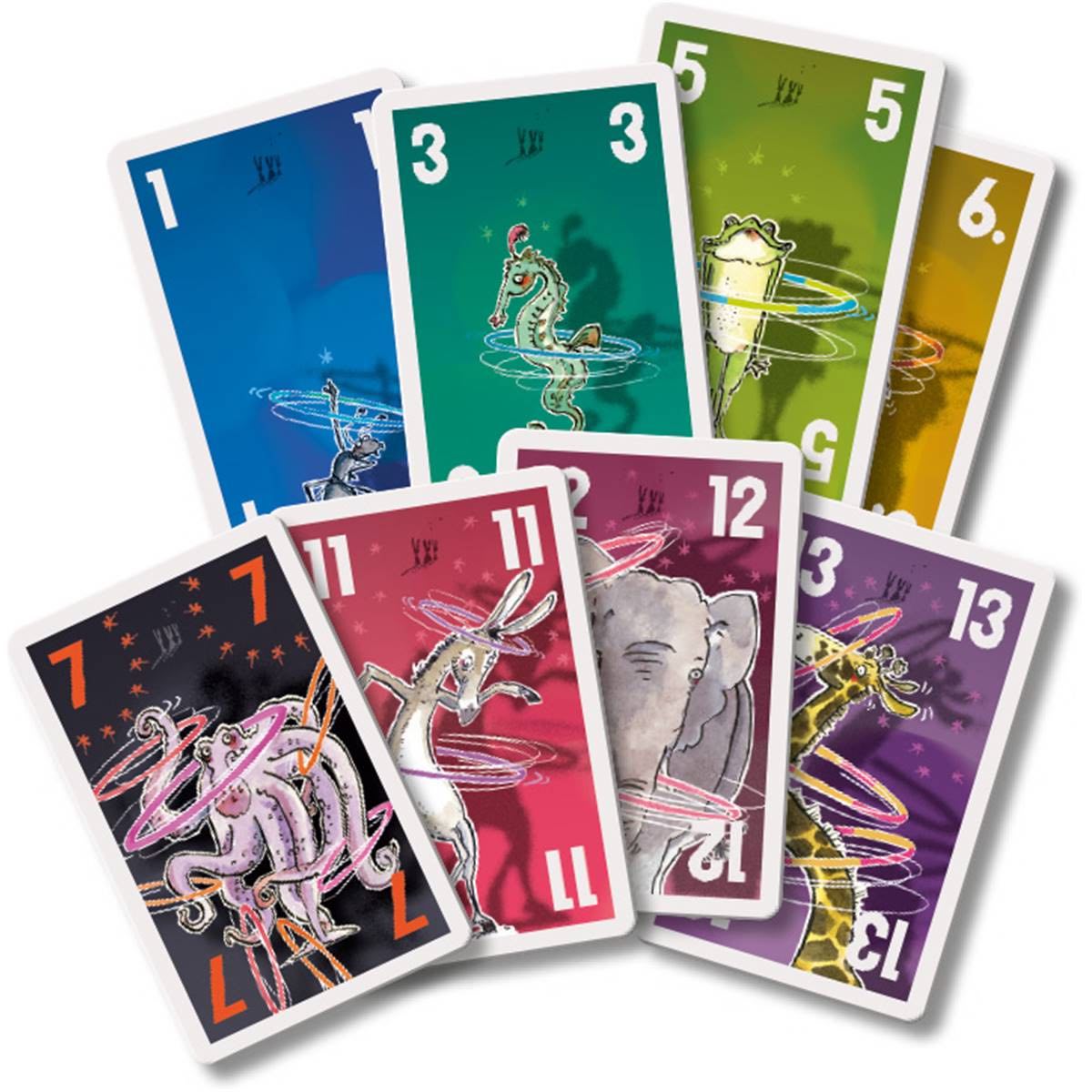 Le premier joueur joue n’importe quelle carte et demande au joueur suivant de jouer « plus haut » ou « plus bas ». Un joueur peut suivre cette demande, ou « doubler » – jouer la même carte que le joueur qui le précède. Ensuite, chacun doit doubler (ou briser le double avec une carte voisine ou un joker. Un joueur qui ne peut pas jouer fait tomber son cerceau et est éliminé du tour. Lorsqu’il ne reste plus qu’un seul joueur, ou lorsqu’un joueur s’est débarrassé de toutes ses cartes, il reçoit autant de cartes qu’il en a joué pendant ce tour.