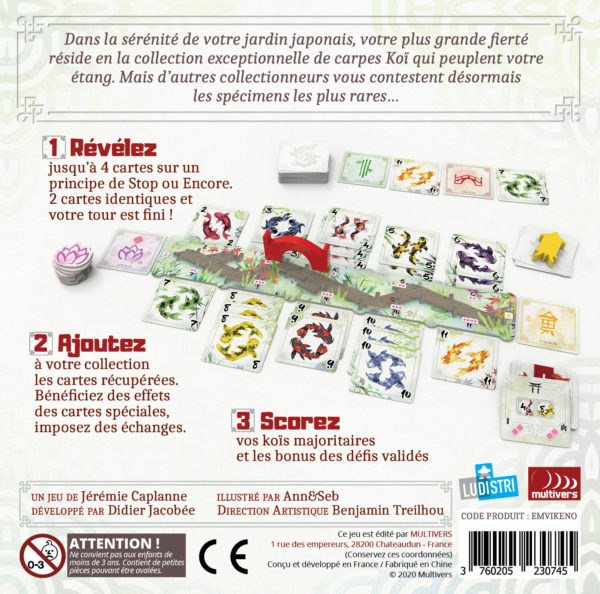Ike no Koï est un jeu de Jérémie Caplanne, illustré par Ann&Seb, mis en valeur par Benjamin Treilhou et développé par Didier Jacobée.