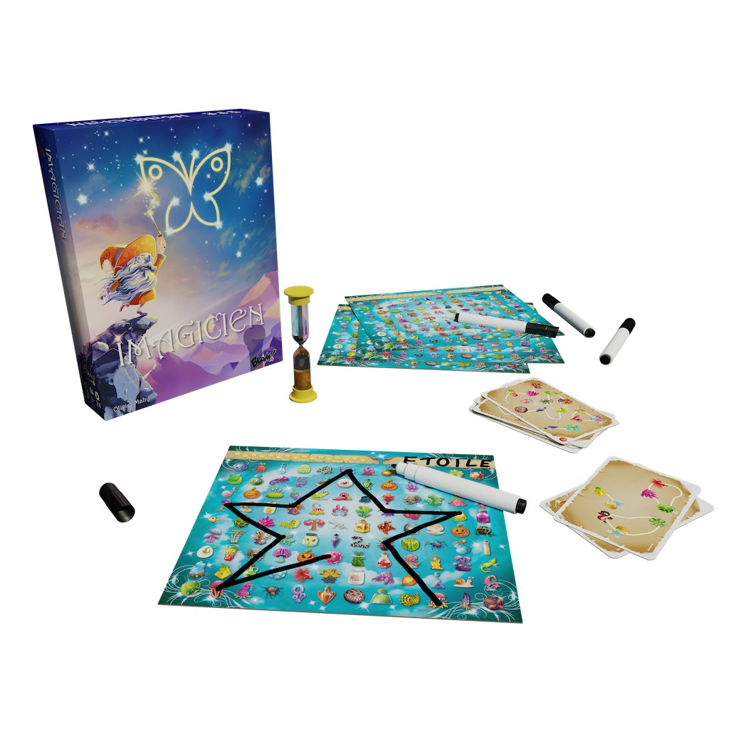 Imagicien, un jeu d’observation et de dessin original. Il faut être le premier à deviner ce qui se cache derrière les symboles, indiqués par la carte, en les reliant.
