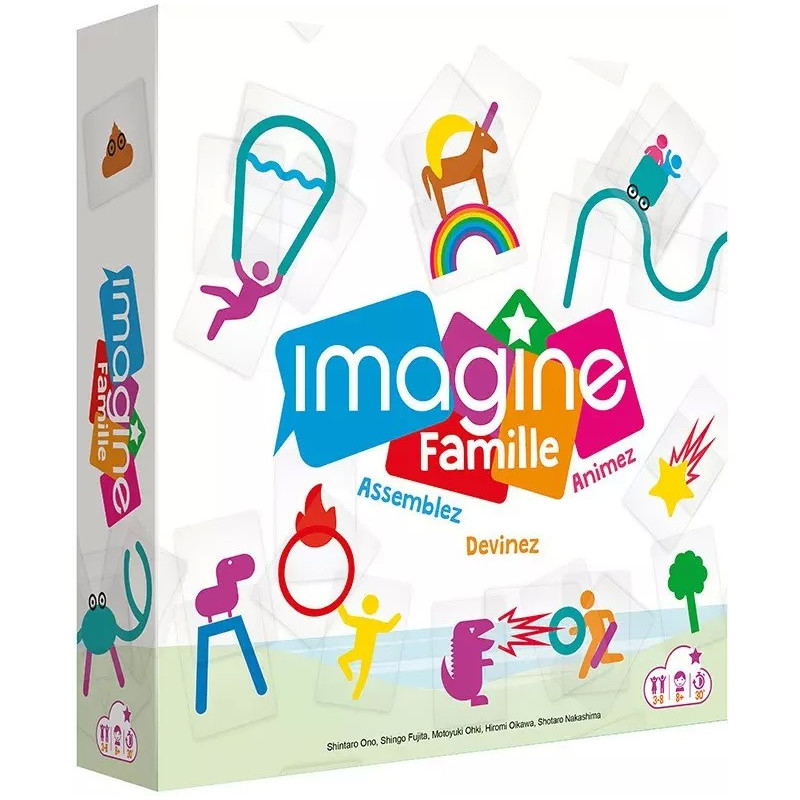 Imagine Famille est un jeu de déduction par équipe pour 3 à 8 joueurs. Grâce à un habile mécanisme de calques, faites deviner le sujet choisi à vos partenaires.