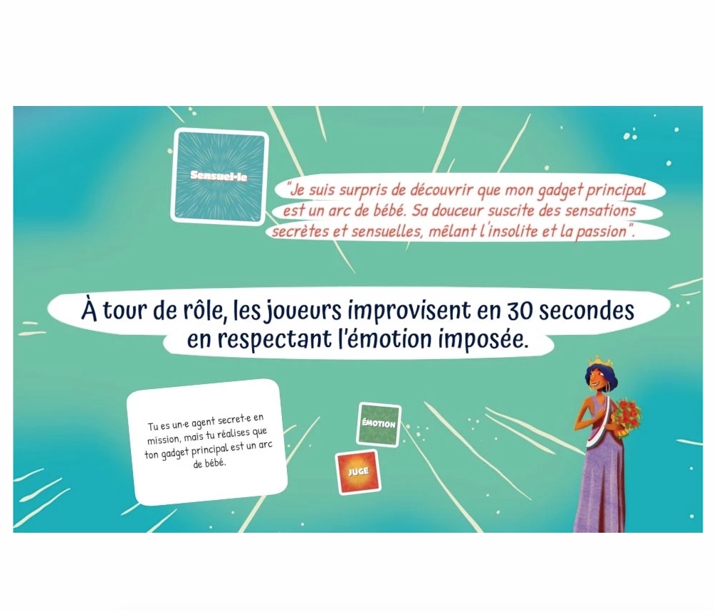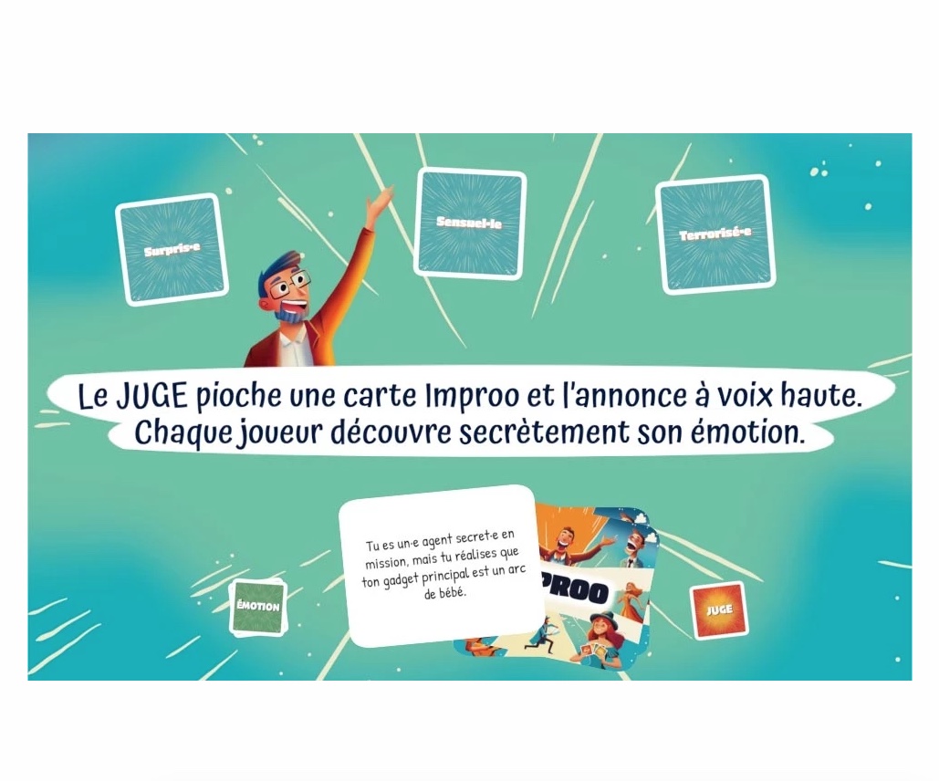 Dans le jeu Improo, libère ta créativité et ton sens de l’improvisation en incarnant des émotions imposées par les cartes !