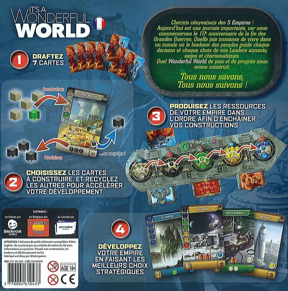 It’s a Wonderful World est un jeu de draft de cartes et de moteur de ressources. Amenez votre Empire à l’apogée en combinant de multiples stratégies ! Développez votre empire…et dominez le monde.