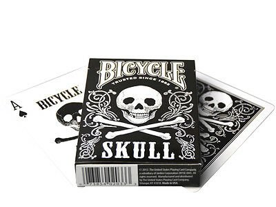 Contenu : Paquet de 54 cartes à jouer « SKULL » de la marque américaine Bicycle. Étui cartonné. Crânes et Os au dos des cartes.