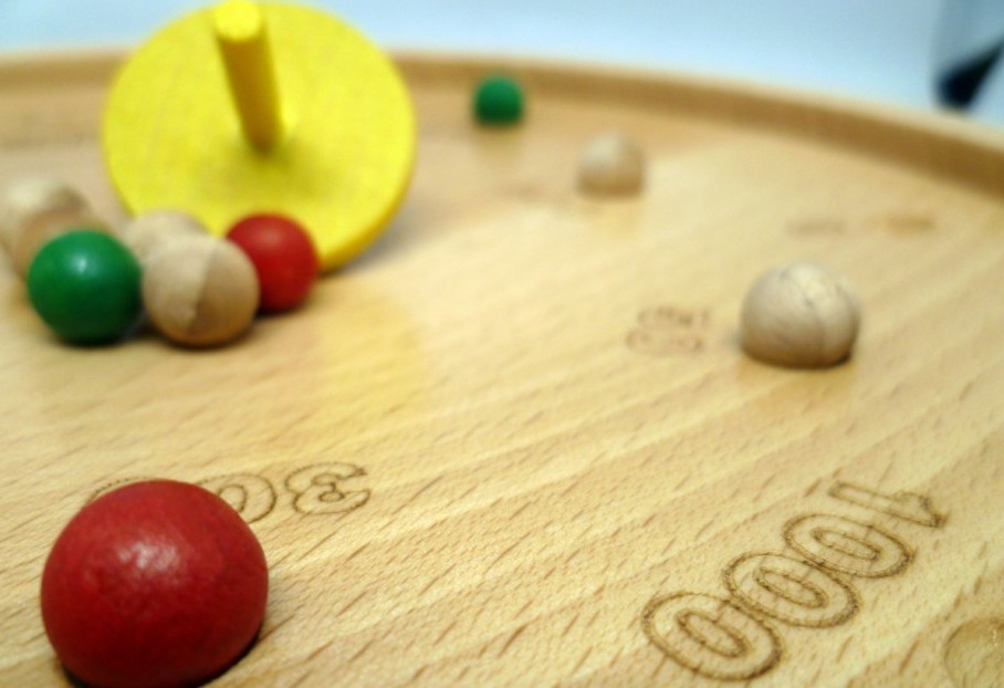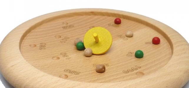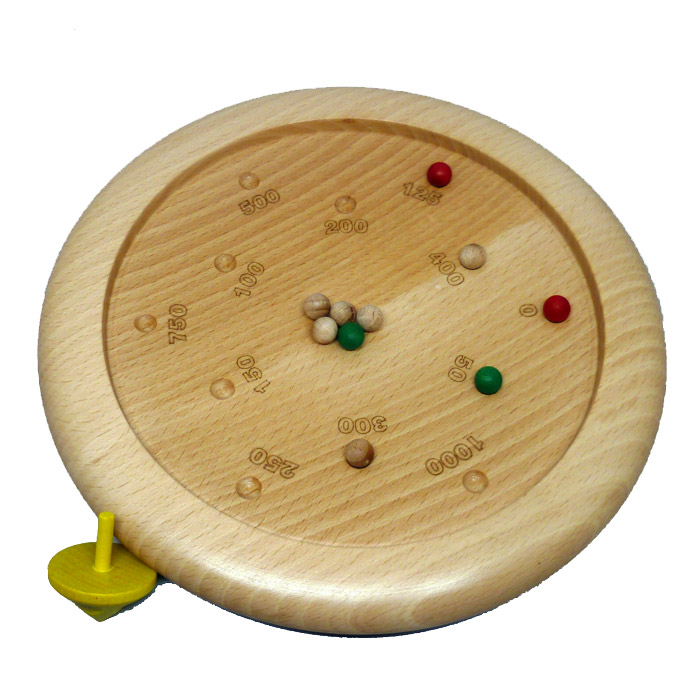 La règle du jeu est très simple. Une fois les 10 billes placées au centre du plateau, il suffit de faire tournoyer la toupie pour les envoyer dans les trous et marquer les points correspondants.