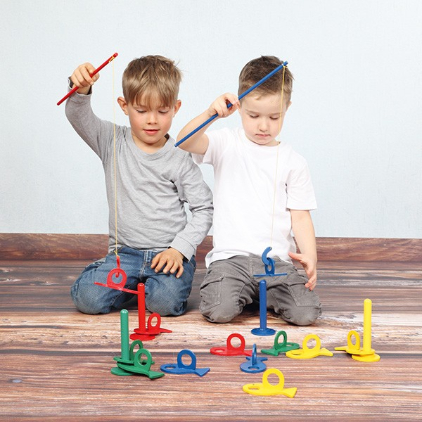 La pêche en folie est un jeu d’ adresse avec lequel on peut jouer à l’ intérieur comme à l’ extérieur, avec ou sans règle. Ce jeu permet de jouer de plusieurs façons. Il favorise la concentration et la coordination main-oeil et la psychomotricité.