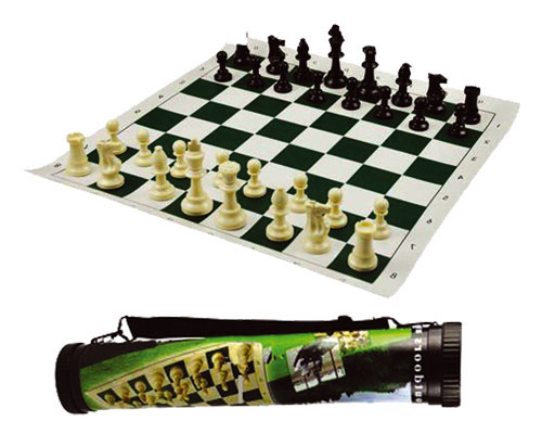 Ce jeu d’échecs de Voyage très pratique se range dans son tube en plastique.