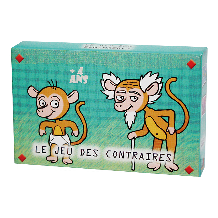 Contenu : 32 cartes grand format (formant 16 associations de contraires), 1 règle du jeu.