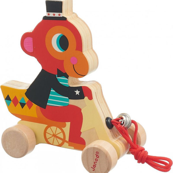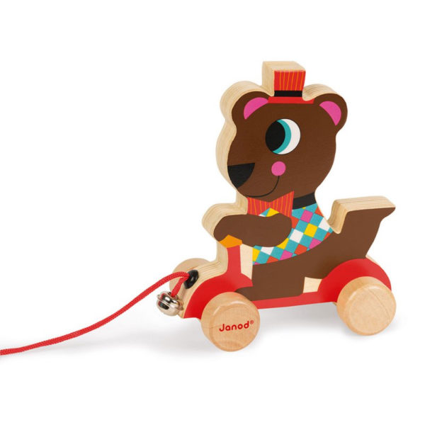 Adorables jouets à trainer, quand bébé promène son jouet… le grelot se balance et fait du bruit pour le plus grand plaisir de l’enfant.