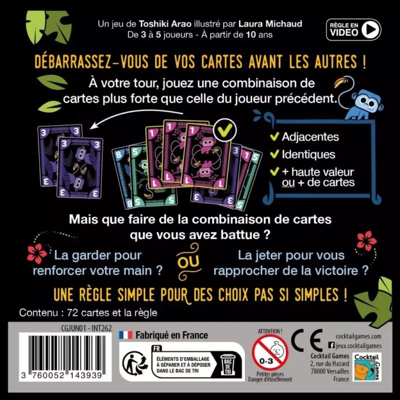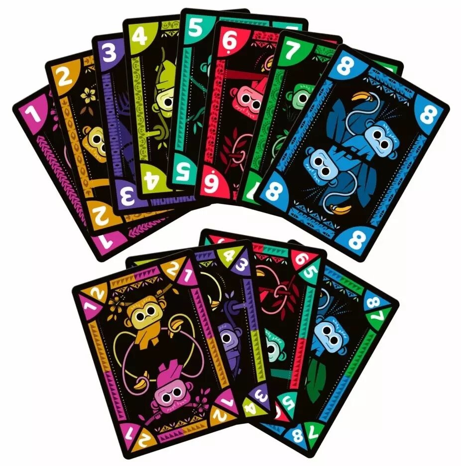 Dans Jungo, vous devez vous débarrasser de vos cartes avant les autres joueurs, mais avec une particularité : vous ne pouvez pas réorganiser votre main.