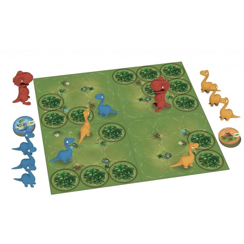 Pour l’emporter, votre équipe de Diplos devra réussir à manger plus de feuilles que l’équipe adverse… à moins que vous ne choisissiez de faire appel aux féroces T.Rex pour éliminer tous les Dinos adverses de la prairie !