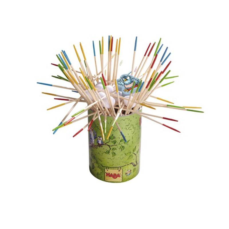 Qui pourra aider Kikou le coucou à bâtir un nid pour couver ses oeufs à l’aide des baguettes ? Mais attention : dès que le nid commence à prendre forme avec seulement quelques branchages, il faut déjà poser un oeuf de coucou.