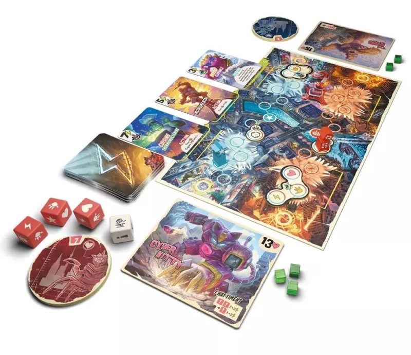 Chaque joueur dispose de trois lancers de dés par tour pour tenter d’obtenir les combinaisons les plus efficaces. Les dés comportent six faces avec des symboles différents : l’attaque, le soin, l’énergie, la gloire et la destruction. Vous pouvez relancer autant de dés que vous le souhaitez lors de chaque lancer pour tenter d’optimiser vos résultats. À la fin de vos trois lancers, vous résolvez vos dés en fonction des symboles obtenus. Vous pouvez alors infliger des dégâts à votre adversaire, vous soigner, accumuler de l’énergie pour acheter des cartes de pouvoir, ou avancer sur les pistes de Gloire et de Destruction. Le premier joueur à atteindre la case Victoire de l’une de ces pistes ou à réduire les points de vie de son adversaire à zéro remporte la partie.