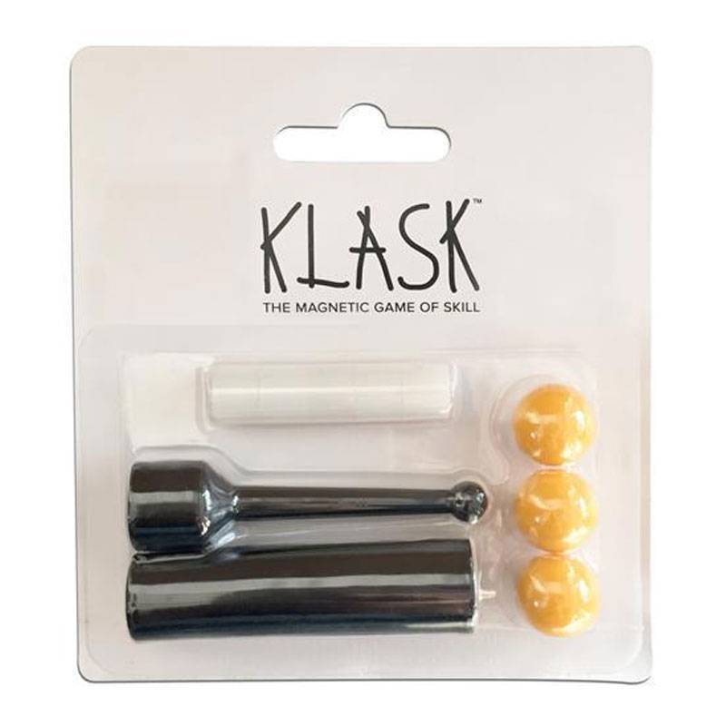 Grâce au Set de pièces de rechange pour le jeu Klask, votre jeu d’ambiance familial préféré sera toujours complet !                                                  À vous de jouer ! Dès 8 ans.