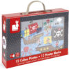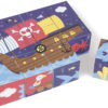 Jeu de 12 cubes en carton illustrés sur le thème des pirates. 2 jeux en 1 : un jeu de construction pour les plus petits et 6 puzzle à recomposer pour les plus grands. Les cubes sont très légers, faciles à manipuler par les petites mains des enfants ; idéal pour développer sa motricité ! Pour les plus grands il y a 6 illustrations à recomposer avec les 12 cubes, pour stimuler l’imagination de votre enfant, tout en s’amusant !