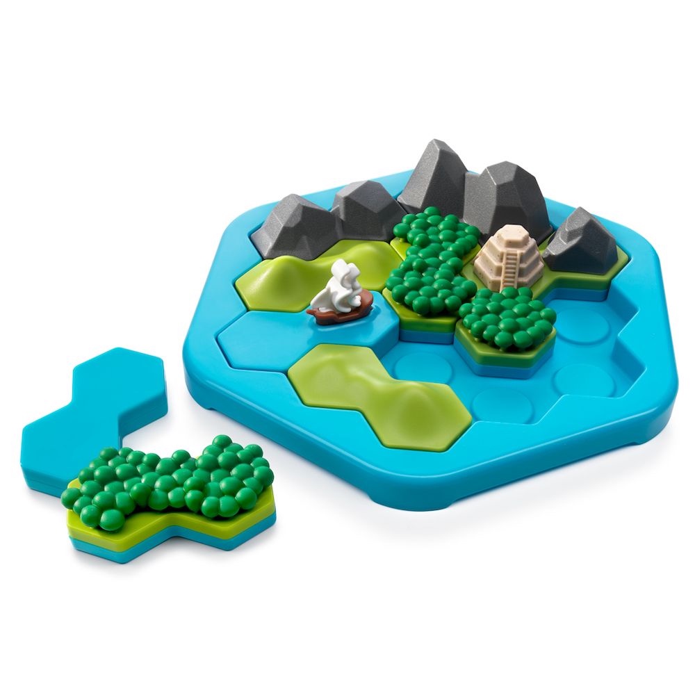 En explorant le nouveau continent trouvez l’unique emplacement de la tuile avec la pyramide. À l’aide des indices donnés par la carte sur la nature des régions sauvages à franchir, saurez-vous assembler les différents types de terrains en manipulant les quatre tuiles articulables afin d’atteindre la mythique Cité d’Or ? Ce jeu de réflexion propose quatre-vingts défis évolutifs du plus simple au plus difficile pour toute la famille.