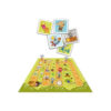 Contenu du jeu : 1 plateau de jeu, 33 tuiles, 4 cartes maison, 4 figurines de souris en bois, 1 dé en bois, règles du jeu.